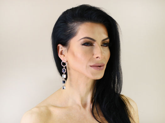 This piece was named after one of Lisa's closest friends. C J has been a longtime collector of L George and she commissioned Lisa to create a stunning edgy earring for a particular outfit. The casings are double sided so you can see crystal on the front and back. We loved this design so much we added it to our newest collection. It is lightweight and easy to wear. If you prefer a shorter length please specify in the message box and we will work with you on a style that will fit your lifestyle