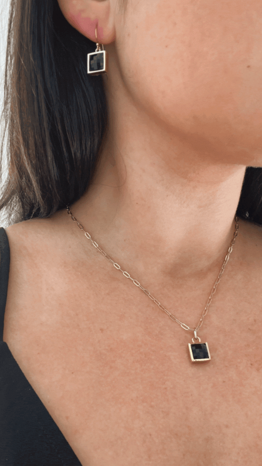 The Dorene Single Drops were the original style from the Dorene Crystal Collection. They have remained in the line because of their extreme popularity. The square edgy style crystal casing is definitely a fan favorite. We are offering a "Bundle" that is made up of 3 Best Sellers at a very affordable price. You will receive one reversible necklace with a black crystal on one side and a clear crystal on the other. Included in the bundle, are two pair or Single Dorene Drops, one black and one clear crystal pair.