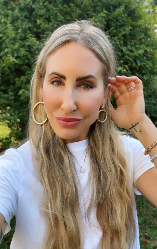 This brand new hoop style is a great everyday style but also gives you a pop of shimmer. You have a choice of two sizes to match your personal comfort. The hollow tube allows for all day comfort from day to night