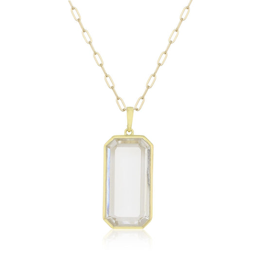 Are you looking for a simple, classic crystal quartz pendant drop to add to your neck mess? The Doris Pendant Drop is the perfect addition. You can choose between a delicate paperclip chain or a heavier rolo chain for more of a statement look