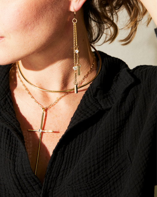 We put a new twist on our best selling Lou Cross. Each is accented with a CZ crystal and a delicate bead chain