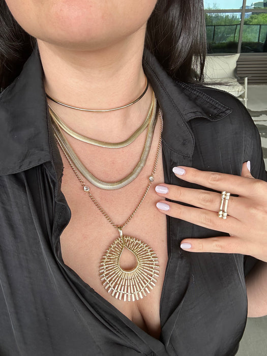 The Peacock Pendant is our stand out piece this season. It is the perfect layering showpiece