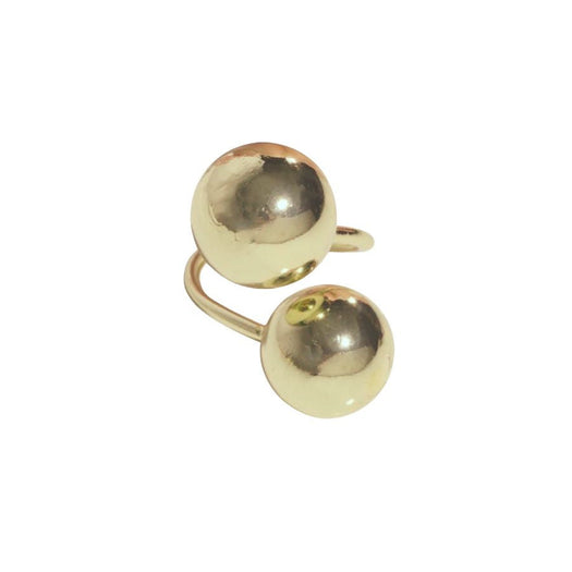 The Bubble Ring is all about bold simplicity. Two polished gold spheres sit on an open band, creating a clean, sculptural look that feels modern and a little unexpected.